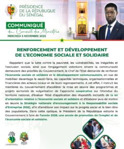 Le Sénégal renforce sa stratégie nationale en faveur de l’Économie Sociale et SolidairePatrick7 novembre 2025